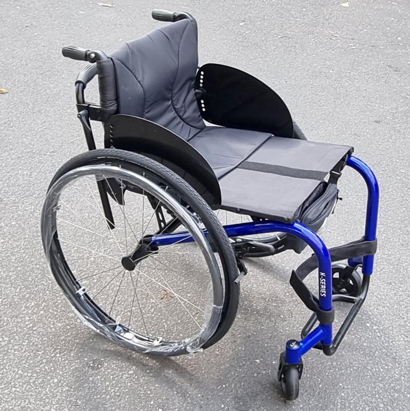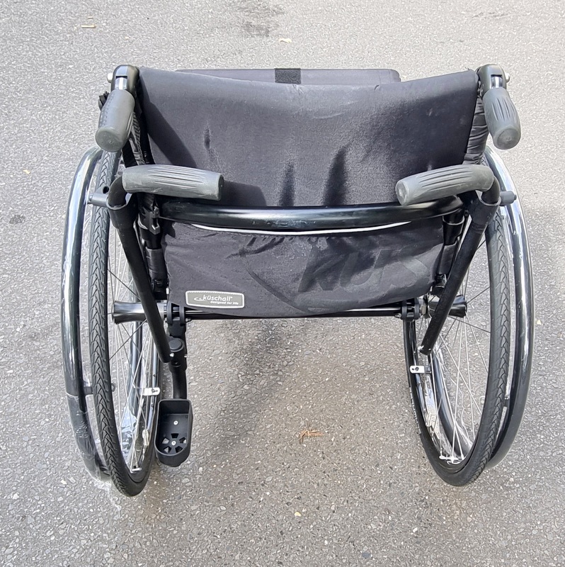 Kuschall K series 2019 model, 420mm x 440mm seat width/depth, outstanding condition, New wheels, Marathon plus tires, carbon side guards, attendant handles fitted, Walking stick holder.