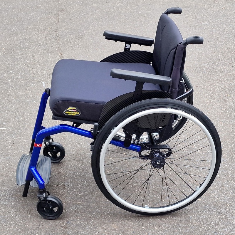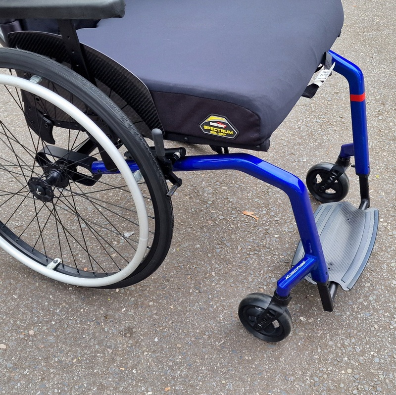Kuschall K series Wheelchair. 2022 Model, 400mm x 420mm width/depth, Huge specifications on this chair. Spinergy wheels, Anti tipper, V-Track contour, backrest high adjustable, Flip-back footplate, Vicair Active O2 cushion, Carbon side guards with removable arm rests. The chair has a few light scuffs and a paint chip next to the brake clamp under the frame but apart from that it’s immaculate. Please be aware the weight of the chair is 17kg this is due to the upgraded backrest and Spinergy wheels.