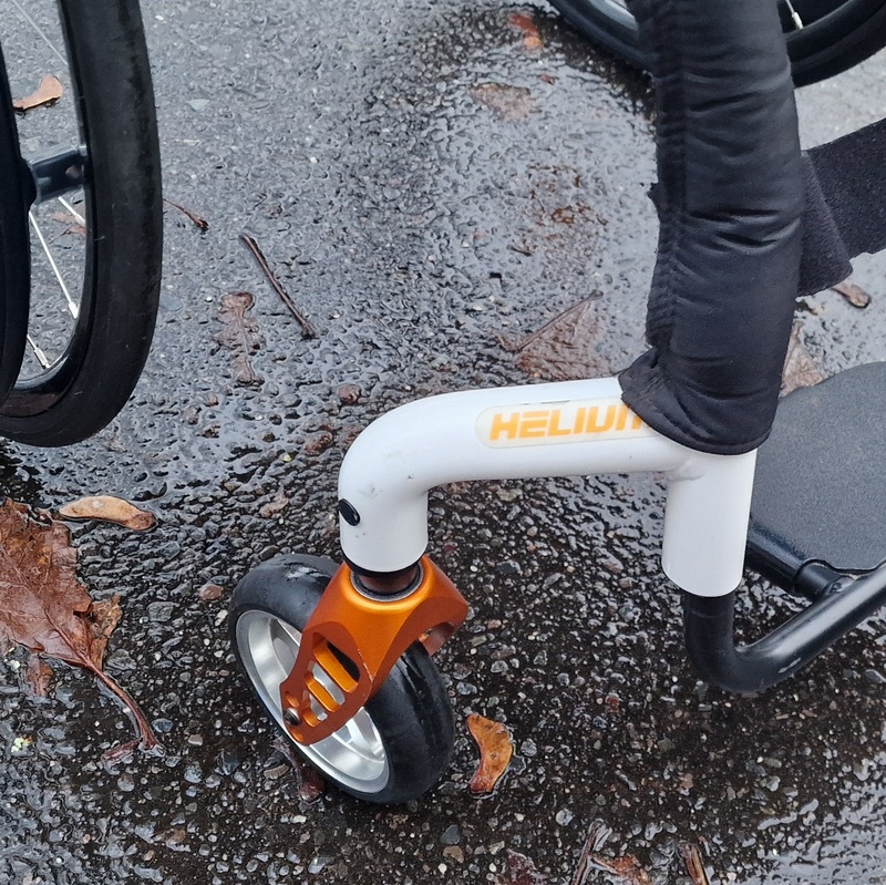 My Quickie Helium is wonderful. Frank even found off-road wheels for me. Now I go around in style, and I didn’t kill my bank account doing so.
